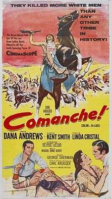 Comanche is a 1956 Western film directed by George Sherman and starring Dana Andrews. The film has a theme song "A Man Is As Good As His Word" sung by The Lancers.
