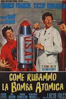 Come rubammo la bomba atomica or How We Stole the Atomic Bomb is a 1967 Italian-Egyptian international co-production Eurospy comedy based on the 1966 Palomares B-52 crash. Filmed in Italy and Egypt, it stars the Italian comedy duo of Franco and Ciccio and was directed by Lucio Fulci.[1] The film features a teaming of parodies of famous film secret agents.[2]