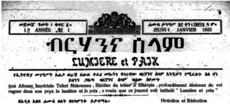 On January 1, 1925 Berhanena Selam was launched. The annual subscription rate was 5 birr and it was published on Thursdays.