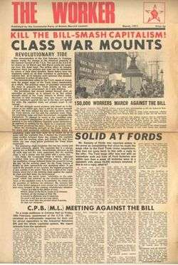 Typical front cover of The Worker from the 1970s