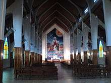 Comodoro Rivadavia Cathedral is the cathedral church of Comodoro Rivadavia, Chubut Province, Argentina. It is situated at the intersection of Avenida Belgrano and Rivadavia. The cathedral is the city's main Roman Catholic church, serving the Diocese of Comodoro Rivadavia, part of the Archdiocese of Bahía Blanca. It was inaugurated by Bishop Moure Argimiro on November 26, 1978, and consecrated on June 9, 1979, by Monsignor Mariano Pérez, first Bishop of Comodoro Rivadavia. The building was constructed in Gothic-Modern style; some elements, such as a stained glass window, were brought from Turin, Italy, in 1959.[1]