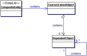 A coarse-grained object is an object with its own life cycle manages its own relationships to other objects. It can be an object contained in the composite entity, or, composite entity itself can be the coarse-grained object which holds dependent objects.[1]