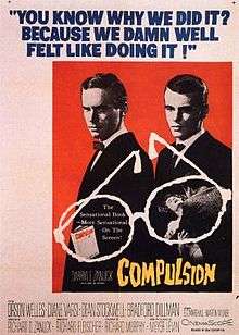 Compulsion is a 1959 American crime drama film directed by Richard Fleischer. The film is based on the 1956 novel of the same name by Meyer Levin, which in turn was a fictionalized account of the Leopold and Loeb murder trial. It was the first film produced by Richard D. Zanuck.