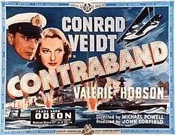 Contraband (1940) is a wartime spy film by the British director-writer team of Michael Powell and Emeric Pressburger, which reunited stars Conrad Veidt and Valerie Hobson after their earlier appearance in The Spy in Black the previous year. On this occasion, Veidt plays a hero, something he did not do very often, and there is also an early (uncredited) performance by Leo Genn.