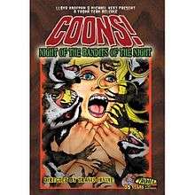 Coons! Night of the Bandits of the Night is a 2005 musical comedy horror satire film written and directed by Travis Irvin][1][2][3] with a budget of $5000.[4] The independent film is the first feature film (commercial release) from Ohio University communications undergraduate students.[5][6] It premiered at film festivals and select cinemas before being released on DVD, and is considered on its way to becoming a cult classic by at least one reviewer.