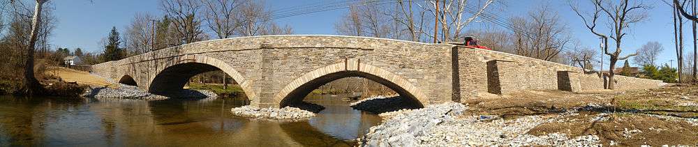 Before the construction of a bridge here, the site was known as Taylor's Ford. The original bridge at the site was probably timber, built about 1770, and funded by subscription. This was replaced by another wooden bridge in 1789. A petition to the Court of Chester County in 1804 complained of the decay of the bridge, and asked the county to erect a stone bridge instead. The bridge was built in 1807 and cost $26,911.03[2][3] It continues to carry traffic today.[4]