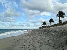 The park, which is almost 15 acres, includes approximately 2,610 feet of beach frontage (most of which is guarded) and 600 feet of intracoastal waterway frontage.[2] The most prominent feature of the beach is the natural limestone, which is part of the Atlantic Coastal Ridge.[3] These rocks, as well as the reefs, are inhabited by marine wildlife, including fish, sea turtles, eels, sharks and marine worms.[1][3]