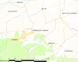 Map of Corbère-les-Cabanes and its surrounding communes