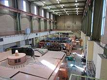 The powerhouse building is 87.5 metres long, 20.1 metres wide and 38.4 metres high. In a normal waterflow year, the station can generate 800 million kilowatthours, about 5% of Saskatchewan's annual electric energy (as much as 100,000 Saskpower customers use in a year).[4] A nearby substation contains circuit breakers and other apparatus that connects the power station to the transmission grid.