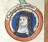 At some time before 1086, she returned to England, and entered the nunnery at Romsey Abbey, where she tutored her nieces Edith and Mary.[1] Edith gave testimony to a conclave of bishops summoned by Archbishop Anselm of Canterbury to determine whether Edith could lawfully marry Henry I of England. During that enquiry she stated that she had never taken holy vows, insisting that her parents had sent her and her sister to England for educational purposes, and that her aunt Cristina had veiled her to protect her "from the lust of the Normans." Edith claimed she had pulled the veil off and stamped on it, and that Cristina had beaten and scolded her for it. Upon her marriage to Henry, Edith changed her name to Matilda in honor of her godmother.