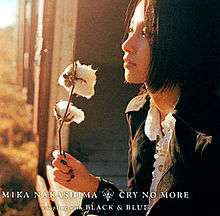 "Cry No More" is Mika Nakashima's 17th single, which replaced Chitose Hajime's Kataritsugu Koto as the closing theme for the anime Blood+. It is a blues-inflected single, and was recorded in the USA. "Black & Blue" was used in CMs that aired in early 2006 by KATE. This single reached #8 on Oricon charts.