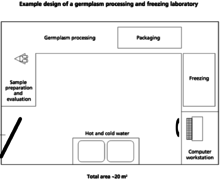 A freezing and processing laboratory for genetic materials can be on the same site as the holding and collecting facility. However, the laboratory must have higher sanitation standards. According to the FAO, a proper germplasm laboratory should include the following.[1]