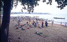 Primary food crops include bananas, breadfruit, taro, maize, beans, papaya, palm oil, and primary agricultural production crops for export include cocoa, copra and coffee.[1][3] Fish and seafood is prominent in São Tomése and Príncipe cuisine, and the fishing industry there contributes approximately 25 percent to the country's gross domestic product.[1][4] Poultry is also raised in São Tomé and Príncipe.[1] The nation's cuisine has been influenced and shaped by African and Portuguese settlers.[5]
