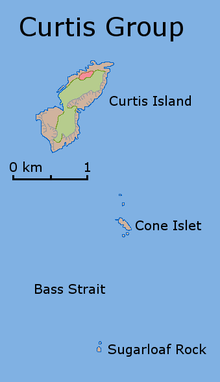 Curtis Island is a granite island, with an area of 150 ha, in south-eastern Australia. It is part of Tasmania’s Curtis Group, lying in northern Bass Strait between the Furneaux Group and Wilsons Promontory in Victoria. It is a nature reserve and has been identified as an Important Bird Area because it supports up to 390,000 breeding pairs of short-tailed shearwaters or Tasmanian muttonbirds.[1]