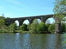 ![]() In Wuppertal-Barmen the line crosses the urban area on the Steinweg Viaduct |