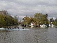 D'Oyly Carte Island is a small private island in the River Thames, England, administratively and historically part of Weybridge near its other inhabited islands and part of Old Shepperton, on the reach above Sunbury Lock, 200m downstream of Shepperton Lock. Before 1890 the island was known as Folly Eyot.