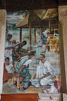 David Shillingford Paynter, RA, OBE (5 March 1900 – 7 June 1975), was an internationally renowned Sri Lankan painter.[1] He was a pioneer creator of a Sri Lankan idiom in what was essentially a Western art form. His most celebrated works are his murals at the Trinity College Chapel in Kandy and the Chapel of the Transfiguration, at S. Thomas' College, Mount Lavinia. The Sri Lanka Philatelic Bureau commemorated Christmas in 1996 with two stamps featuring the murals from the Trinity Chapel.[2]
