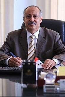 ![]() Dawood Al‐Hidabi presenting at his office University of Science and Technology, Sana'a | |