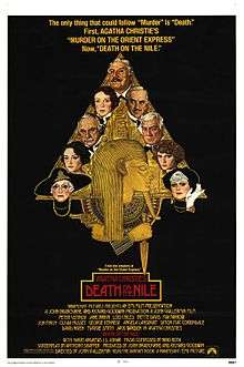 Death on the Nile is a 1978 British mystery film based on Agatha Christie's 1937 novel of the same name, directed by John Guillermin and adapted by Anthony Shaffer.[3] The film features the Belgian detective Hercule Poirot, played by Peter Ustinov, plus an all-star supporting cast including Bette Davis, Mia Farrow, David Niven, Maggie Smith, Angela Lansbury, George Kennedy and Jack Warden.