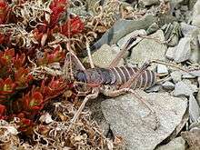 Deinacrida connectens is a species of insect in family Anostostomatidae. It is endemic to New Zealand and is typically found in the mountainous regions of the South Island.