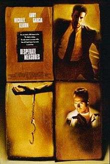 Desperate Measures is a 1998 American action thriller film starring Michael Keaton, Andy García, Marcia Gay Harden and Brian Cox, directed by Barbet Schroeder. It was filmed in both the San Francisco Bay Area and downtown Pittsburgh with such landmarks as the BNY Mellon Center, the Allegheny County Courthouse[1] and the Oakland Bay Bridge.