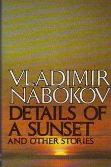 Details of a Sunset and Other Stories is a collection of thirteen short stories by Vladimir Nabokov. All were written in Russian by Nabokov between 1924 and 1935 as an expatriate in Berlin, Paris, and Riga and published individually in the emigre press at that time later to be translated into English by him and his son, Dmitri Nabokov. The collection was published with a foreword by the author in 1976.