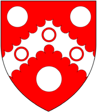- ↑ As seen in 19th c. stained glass window in Mamhead Church. Blazoned with chevron sable and with difference of a martlet, per Vivian, p.35