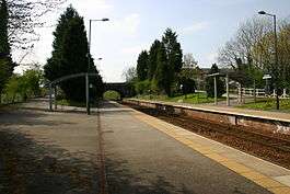 Dinsdale railway station serves the village of Middleton St George in the borough of Darlington and the ceremonial county of County Durham, England. It is located on the Tees Valley Line and is operated by Northern who provide all passenger train services.[1] It is closely linked with the history of the Stockton and Darlington railway.
