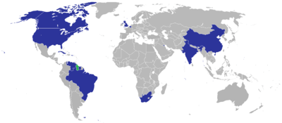 Map of countries with a Guyana diplomatic presence
