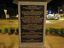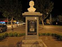 In late 2008, the Rotary Club of Griffith erected a memorial in Banna Avenue, the main street of Griffith, to honour the 30th anniversary of Donald Mackay's murder.[15][26] The statue of Donald Mackay itself is a white marble bust with a plaque inscribed with "All that is necessary for the triumph of evil is for good men to do nothing. "