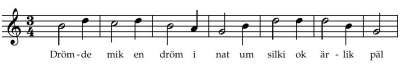 Drømde mik en drøm i nat is the oldest known secular song in the Nordic countries, written around 1300. It is written in Old East Norse and is included in Codex Runicus, a transcript of Scanian Law where it forms a final note. Like the law itself, it is written in runes, and the tune is written on two simple staves in an early form of musical notation.[1] The song is sung in episode 6 of Vikings.