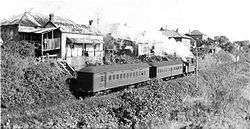 The year 1895 ushered in an economic depression and the railways of the Colony were hard hit. In an endeavour to reduce working expenses, it was decided to experiment with the use of steam tram motors and cars with railway contour wheels and a motor with trailer car, also dummy truck with dual tramway and railway couplings, were brought from Sydney for this purpose. The railway service was replaced by trams on 1 August 1895, the trams conveying goods vehicles as required. Everything proving satisfactory, this working was continued for the next 20 years.