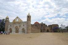 The largest and most important archeological site is Monte Albán, which was capital of the Zapotec empire.[12] It is located 400 meters above the valley floor, just outside the city of Oaxaca. The buildings are aligned with the cardinal directions and the movement of the stars, with the idea of creating a place that would be a meeting point between heaven and earth. While the main ceremonial center has been excavated, there still remains many kilometers square of site to explore.[1] Located at the eastern end of the Central Valleys, another major archaeological site is the ancient Zapotec center of Mitla, which in the Zapotec language originally meant "place of the Dead." Mitla is famous for its unique ancient stone fretwork. These mosaics are completely abstract with no representations of animals or humans.[1][12]