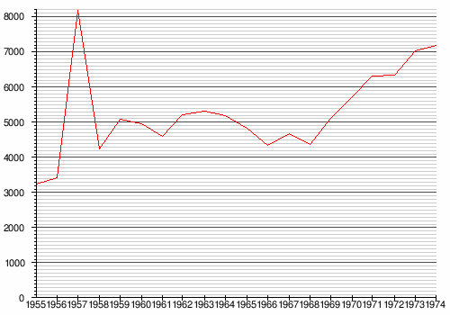 Year 1956 1958 1960 1963 1965 1967 1968 1970 1972 1973 1974