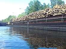 A barge loaded with timber in a lock on the Elbe–Lübeck Canal