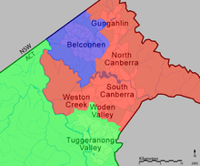 - ↑ "Electoral boundaries". ACT Electoral Commission. 2008. Archived from the original on July 23, 2010. Retrieved 2010-08-21.