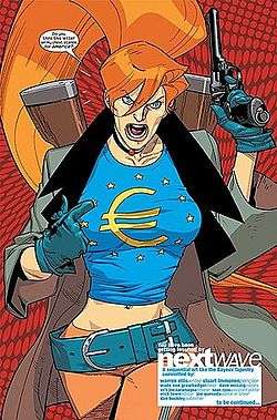She suffers constant abuses by her teammembers, like being confronted by Tabitha Smith about her European origins and accent (referred even in the Nextwave Theme Song as her main characteristic), and constantly ogled by Aaron Stack, attracted by her large chest.[14][15]