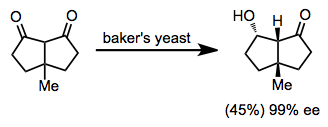 Microorganisms reduce certain classes of simple ketones with extremely high enantioselectivity. Baker's yeast is the most common organism used to reduce ketones enzymatically,[18][19] although other microorganisms may be used. Access to "unnatural" reduced enantiomers is difficult in most cases.