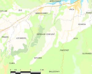 Espira-de-Conflent is located in the canton of Vinça and in the arrondissement of Prades.