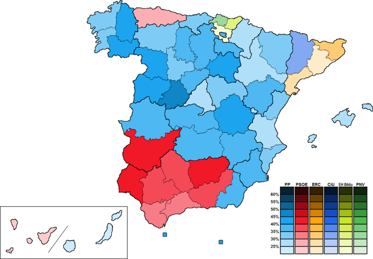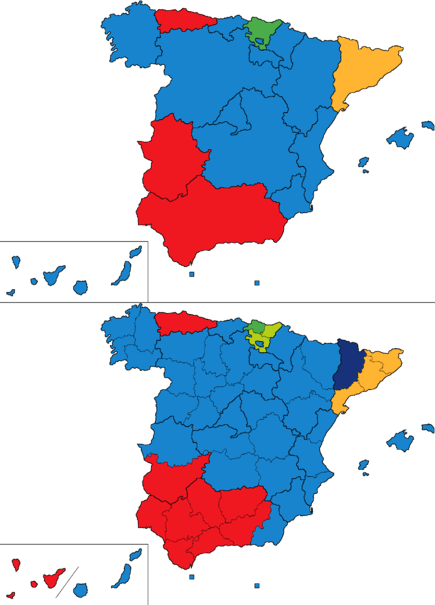 | Most voted party by autonomous community and province.