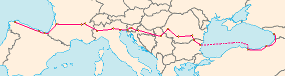The E 70 routes through ten European countries, and includes one sea-crossing, from Varna in Bulgaria to Samsun in Turkey.