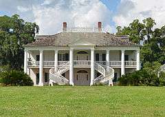Evergreen Plantation is a plantation located on Louisiana Highway 18 near Wallace, Louisiana. The main house was constructed mostly in 1790, renovated to its current Greek Revival style in 1832, and the plantation's historical crop was sugarcane. It was an operating plantation up until about 1930, when the Depression brought about the abandonment of the house. However, it continued to produce sugar cane under the direction of the bank that owned it, and is still a working sugar cane plantation today. It was extensively restored during the 1940s, with 300,000 bricks from the demolished Uncle Sam Plantation used in the restoration.[3]