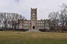 The scene in which Father Karras listens to the tapes of Regan's dialogue were filmed in the basement of Keating Hall at Fordham University in the Bronx.[38] William O'Malley, who plays Father Joseph Dyer in the film, was a real-life Jesuit and assistant professor of theology at Fordham at the time.[39]