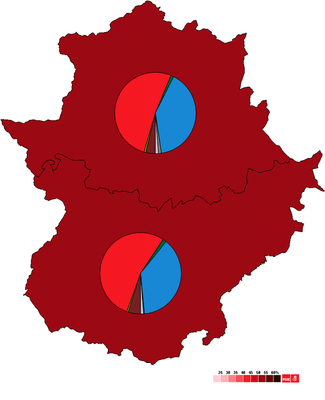 United Left (IU), for the first time in its history, was unable to meet the 5% party threshold either regionally or in any of the provinces and was left out of the Assembly, this being the only time that just two parties had parliamentary representation in the Extremaduran Assembly.