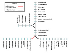 The Falaknuma - Secunderabad route (FS) is a rapid transit service of the Multi-Modal Transport System of Hyderabad, India. Spanning 12 stations, it runs between Falaknuma and Secunderabad twice a day.