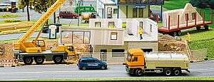 Faller now specializes in making scenery, plastic model kits and other accessories for model railroads but has manufactured a range of toys during its history, such as model aeroplane kits, the Auto Motor Sport (AMS) slot car racing sets and die-cast model cars. Their modern product line includes railway structures, houses and commercial buildings, bridges, amusement rides and terrain accessories in H0, N, TT and Z scales, as well as the Car System. Since 1997 Faller also owns the Pola brand, which is now solely devoted to G scale structures.[2]