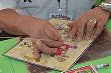 The artisans who participated are invited by the organization and change each year. These artisans are vetted by representatives of the Feria, with visits to workshops to see what is done, the quality and the make sure the wares are made by the artisans themselves.[1] Some are already well known in Mexican folk art circles, such as those featured in works such as the Grand Masters of Mexican Folk Art, but others are completely unknown.[1][4] Some are families who have done the craft for generations.[1][3] As the purpose is to support the artisans, participants are not charged booth fees or a percentage of sales.[3] Transportation of artisans is paid for by the Feria as well, with the same being housed by volunteer families in their homes. These families are mostly expats living in and near Chapala, and they not only provide beds, but also food and social outlets.[5][3][2] The organization states that it helps to create inter-cultural bonds, and for many of the artisans, their first contact with the world outside their home.[1] Some of the artisans are illiterate and many never have been out of their hometowns.[3]