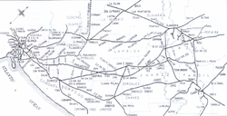 - Western line: From La Plata Port and Meridiano V, crossing the city of La Plata and Brandsen, Monte, Saladillo, 25 de Mayo, and 9 de Julio Partidos. This line had two branches: