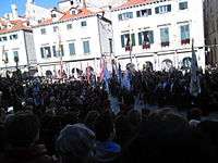 Festivity of Saint Blaise, the patron of Dubrovnik (Croatian: Festa Svetog Vlaha, zaštitnika Dubrovnika) is a festivity organised on February 3 continuously since year 972 in the City of Dubrovnik, Croatia on the occasion of the celebration of Saint Blaise's day. Festivity is based on the legend of the appearance of St. Blaise who helped the people of Dubrovnik to defend their town against Republic of Venice. Festivity is attended by a large number of people that include residents of the city, surrounding areas, other parts of Croatia and neighboring countries, as well as tourists, representatives of state and local authorities and Roman Catholic Church.[1] Festivity was made a part of UNESCO Intangible Cultural Heritage in 2009.[2]