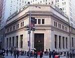 The Financial District, also known as FiDi,[1] is a neighborhood located at the southern tip of the borough of Manhattan in New York City, which comprises the offices and headquarters of many of the city's major financial institutions, including the New York Stock Exchange and the Federal Reserve Bank of New York. Anchored on Wall Street in the Financial District, New York City has been called both the most financially powerful city and the leading financial center of the world,[2][3][4][5][6] and the New York Stock Exchange is the world's largest stock exchange by total market capitalization.[7][8] Several other major exchanges have or had headquarters in the Financial District, including the New York Mercantile Exchange, NASDAQ, the New York Board of Trade, and the former American Stock Exchange.